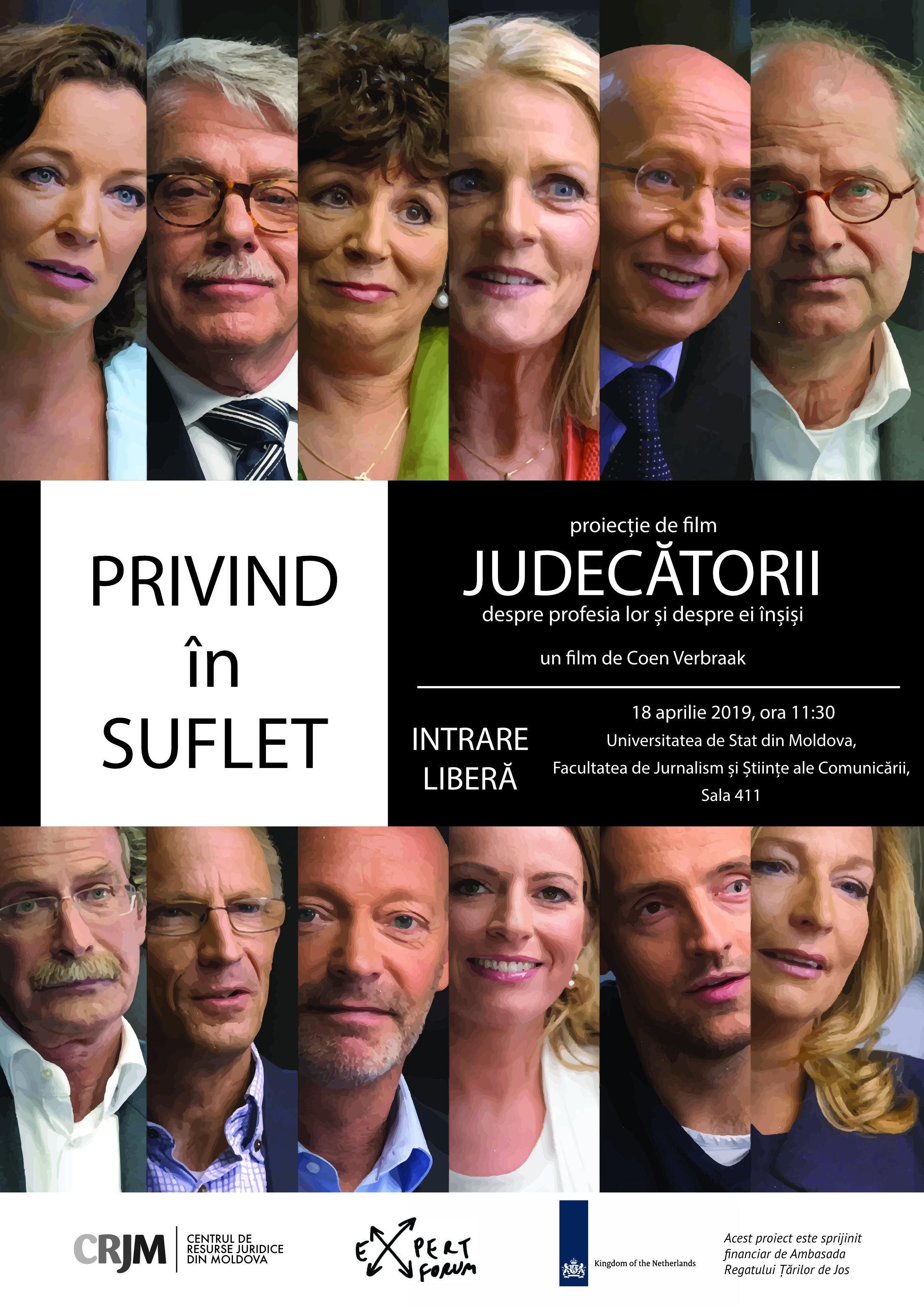 PRIVIND în SUFLET Proiecție de film JUDECĂTORII despre profesia lor și despre ei înșiși un film de Coen Verbraak 18 aprilie 2019, ora 11:30 Universitatea de Stat din Moldova, Facultatea de Jurnalism și Științe ale Comunicării, Sala 411
