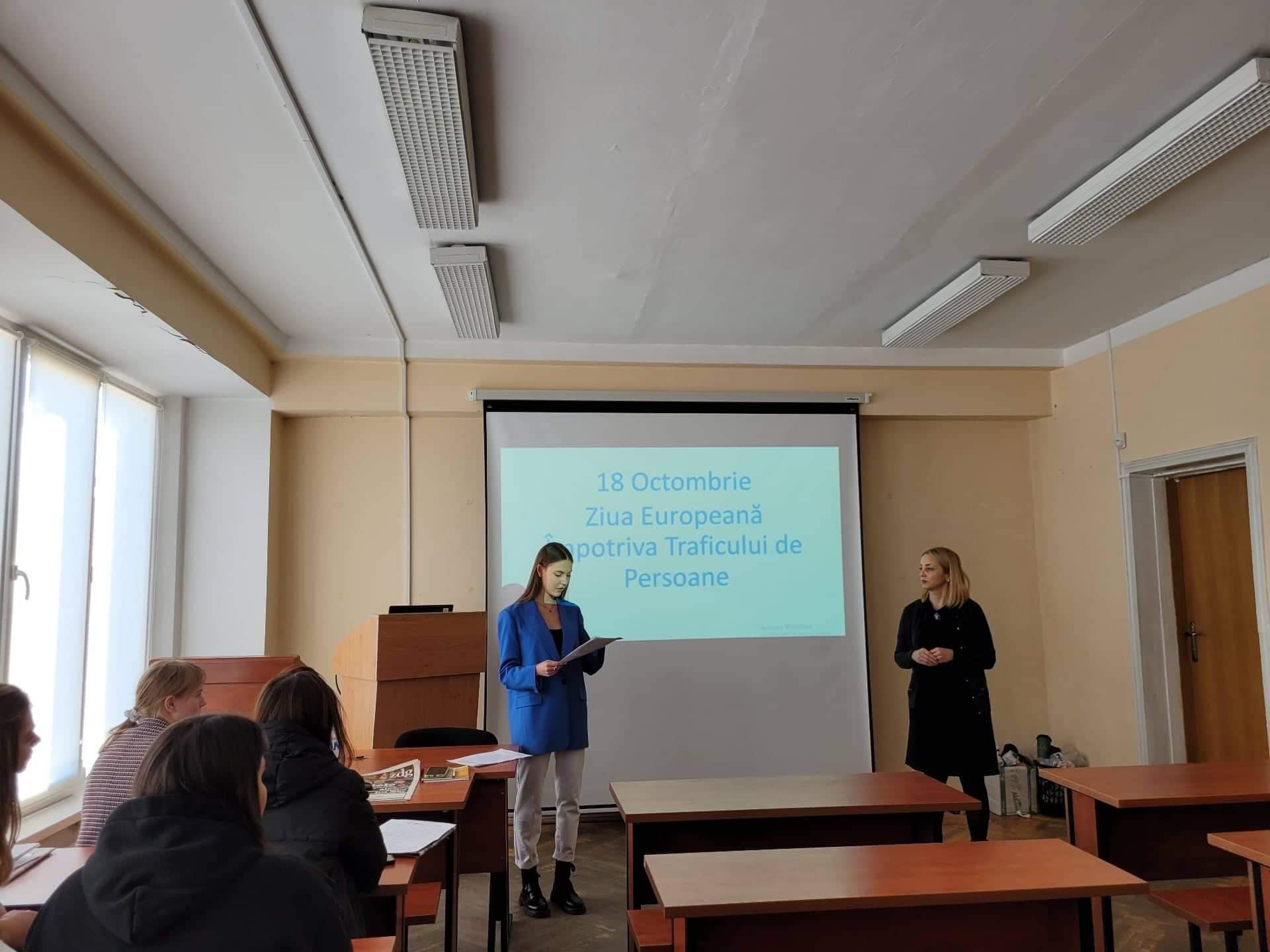 În contextul Zilei Europene de luptă împotriva traficului de ființe umane, studenții anului I, de la Facultate de Jurnalism și Științe ale Comunicării a Universității de Stat din Moldova, au avut un seminar în cadrul cursului Jurnalism de informare organizat de lectorul universitar, doctor în științe ale comunicării, Mariana Toacă.