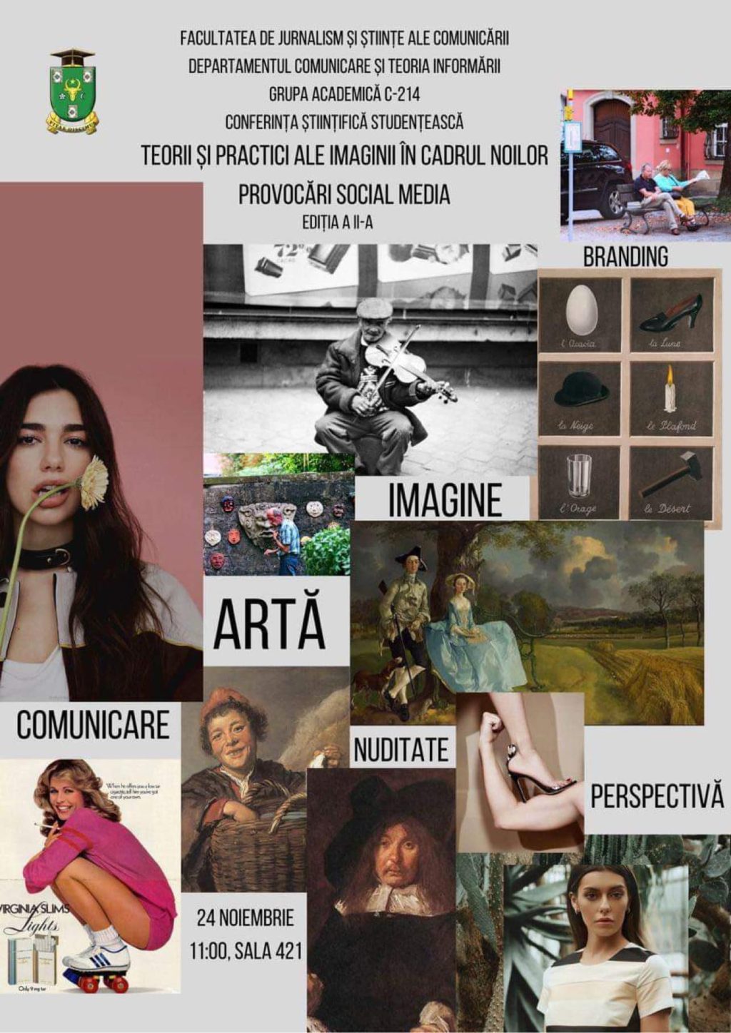 În acest context, la cursul ,,Teoria imaginii”, grupa C214 organizează joi, 24 noiembrie, Conferința științifică studențească cu denumirea: ,,Teorii și practici ale imaginii în cadrul noilor provocări social media “, ediția a ll-a.