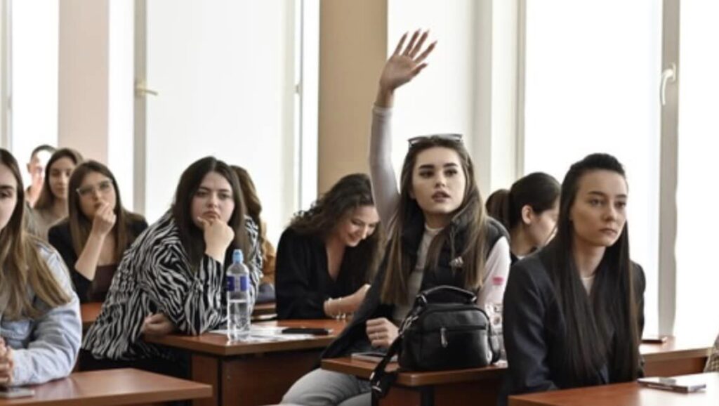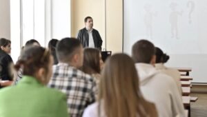 La sfârșitul întâlnirii, studenții au putut să adreseze întrebări.