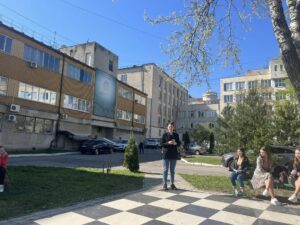 În cadrul cursului “Discurs public și persuasiune”, studenții FJȘC, anul I, specialitățile Jurnalism și procese mediatice și Comunicare și relații publice, au avut o activitate practică în scuarul din curtea Universității de Stat din Moldova.